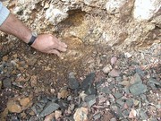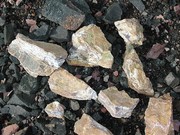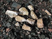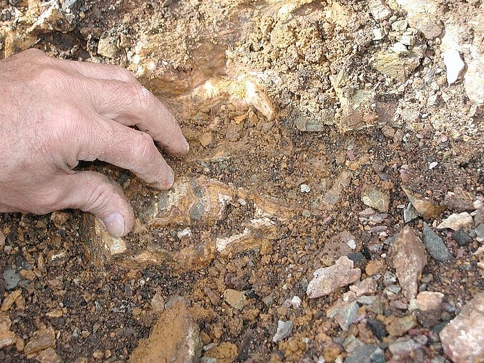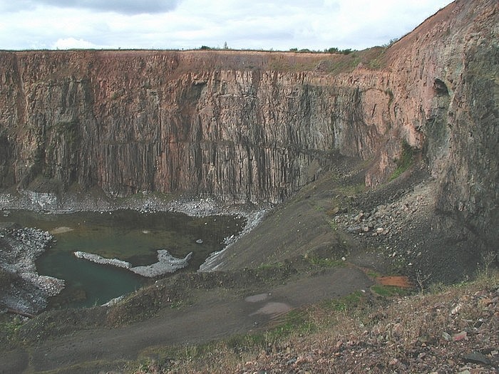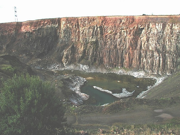 Im Steinbruch Steinbach bei Lebach kommen ausschließlich Lagenachate vor. Die Achate befinden sich in den Dolomit-Trennschichten der verschiedenen Gesteinslagen und sind meist im Dolomit eingewachsen. Im Bild sind in der Trennschicht Achatbildungen von 0,25 - dicke und 1,3 m Länge zu sehen.